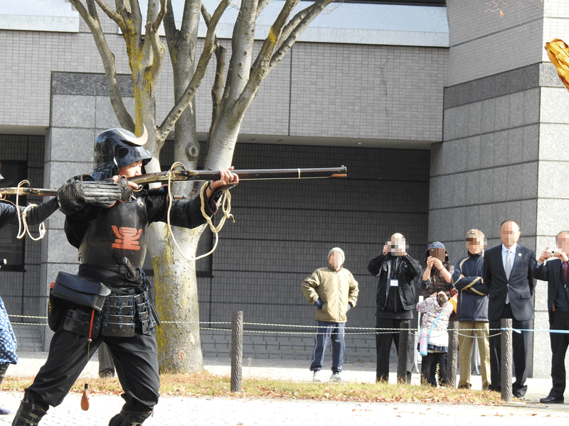 | 2016年4月29日:松本城庭園にて行われた、第七回国宝松本城松本藩古流砲術演武の写真です。 |